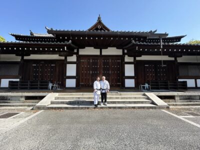 Last lunch at the hotel, then walk to the Butokuden with Tallack Hanshi for some souvenir photos. We crossed paths Ohmi Senseifounder of Iaido Canada. Then towards Kyoto station, then Osaka for the return flight to Vancouver.