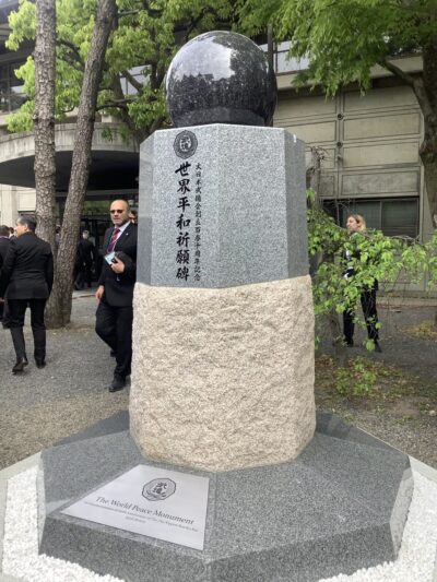 Highly emotional moment: the inauguration of monument for world peaceon the occasion of the 60th anniversary of the end of the Second World War, Budo Center.