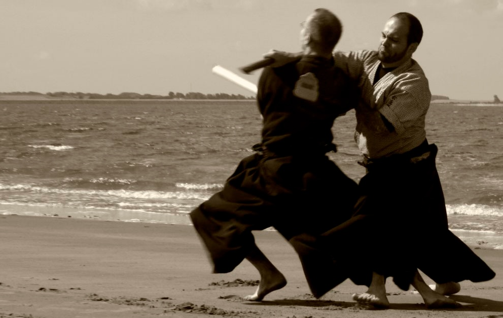 I attended a seminar led by an iaido sensei I didn’t know. He concentrated on the basics of the kata butemphasizing the involvement of hara during little guyfollowed by furikaburi, kiri-oroshiand finally the finished In kesa giro. A great opportunity to refine the cornerhave blisters.