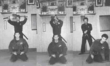 “Once I was sitting in my master’s room when he said to me: Close your eyes and wait, whatever happens, make sure you don’t open them…” Then I heard my master walk away and go down the stairs and I think it was then that I lowered my guard knowing that he was no longer near. After a few hours, some sort of massive and overwhelming presence approached diagonally from behind me and having the image of my body cut in two, I felt the need to escape by rolling straight from the position I was waiting in. Then I had the strange impression of a head flying, so I did a sudden frontal fall like the first somersault. As soon as I sat down in Fudoza, I heard my master’s voice Takamatsu Sensei who told me: «Very good, you did it, now you can open your eyes!«Turning around, I saw the sensei lowering a real sword (shinken).